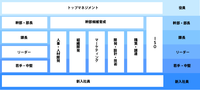 ヒアリングを進めると、全社的に人を育てる文化が乏しく、マネージャーになるまでチームを意識する機会が少ないのが課題だと判明しました。研修の検討においては、スキル習得よりもマインドセットを整えることを重視。座学で学べる内容は事前課題とし、研修当日はロールプレイなど実践的なセッションに時間を多く割きました。これにより、階層別研修に新たなステップが加わり、全体の育成計画をより体系的なものにすることができました。